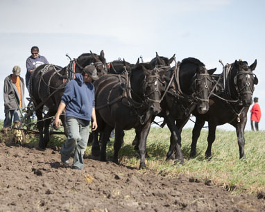 Plowing with a 6 horse hitch at the 2009 Fall Field Day. |
